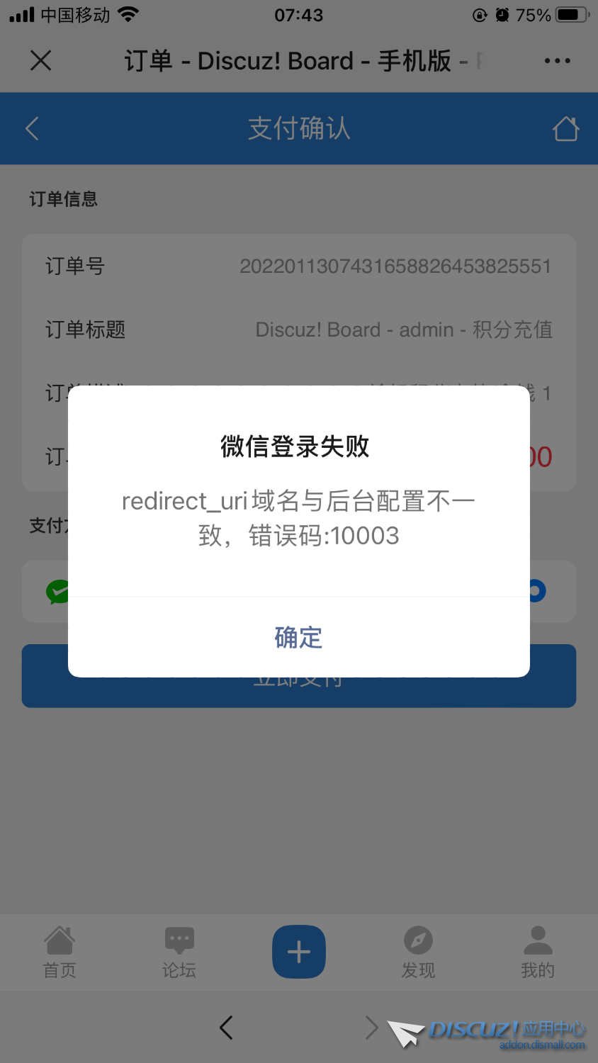 后臺(tái)微信設(shè)置測(cè)試充值成功,會(huì)員中心提示域名配置不一致,失敗 查看全文