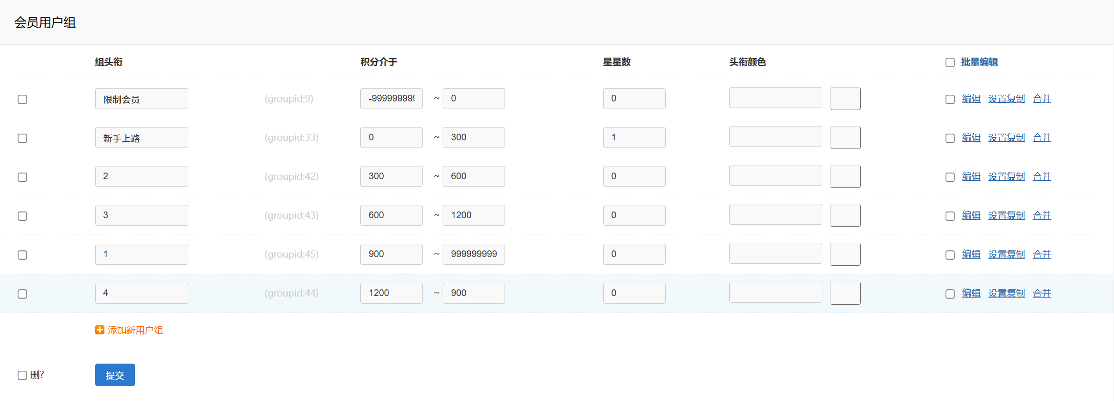 [求助] 會員用戶組新增類型,積分介于怎么搞搞,總是錯亂,有沒有更快更便捷的辦法 |