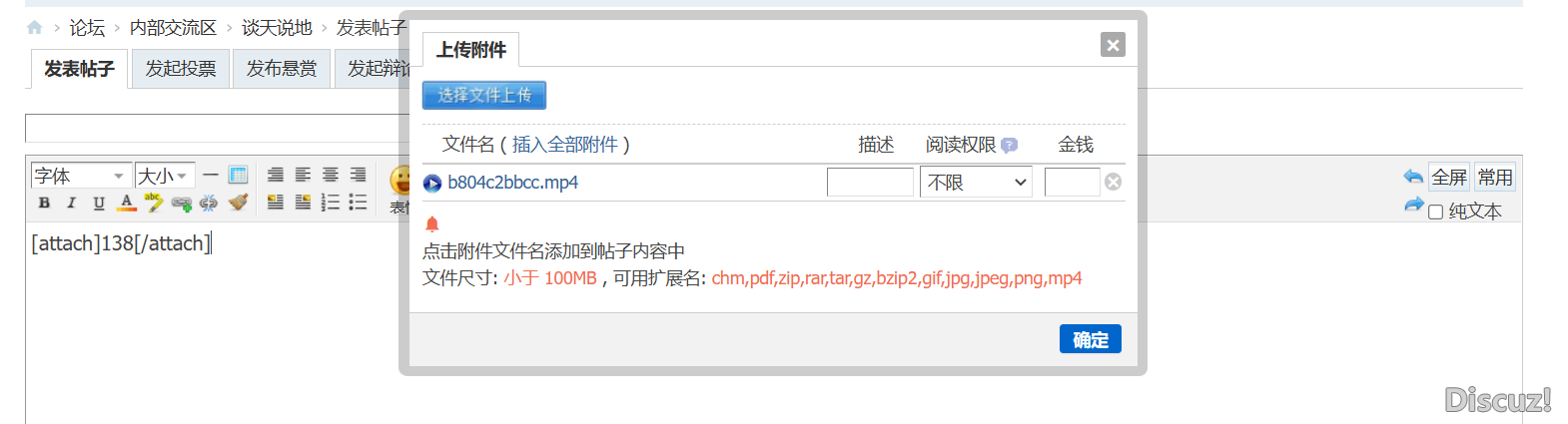 [已解決] 請問怎樣設置能將本地附件的 MP4 文件在帖子中直接播放? |