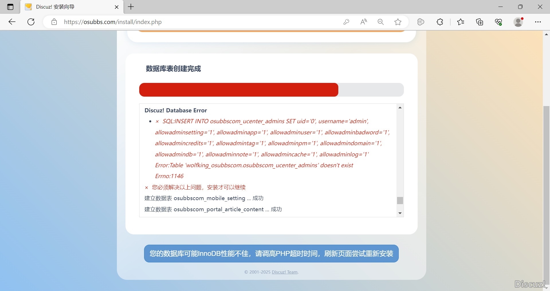 [求助] 從X3.2升級到X3.5貌似成功了,但是現在要網站搬家,安裝X3.5時會報錯 |